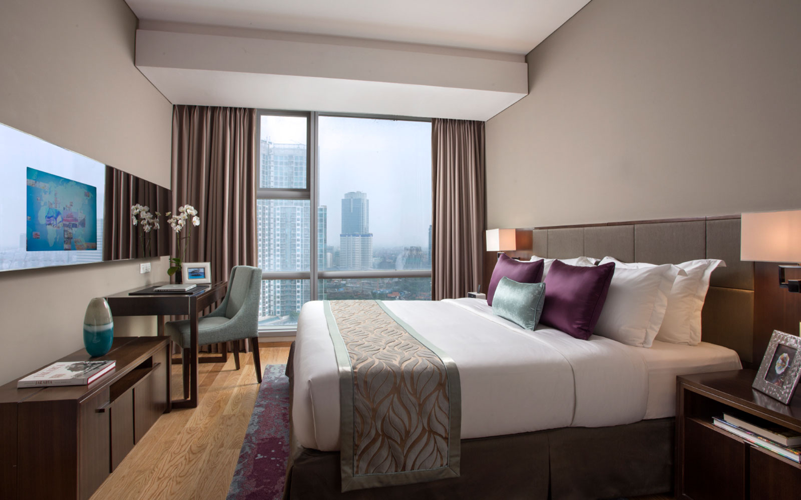 忙碌一天之余,回到公寓放松身心。Ascott Kuningan Jakarta 为全球旅客提供舒适并且奢华体验,使我们宾至如归。高档的公寓内陈列着由印度尼西亚最著名的艺术家之一 Hendra Gunawan 创作的精美表达艺术作品。客人将在大堂并且公寓内看到他色彩缤纷的艺术品。