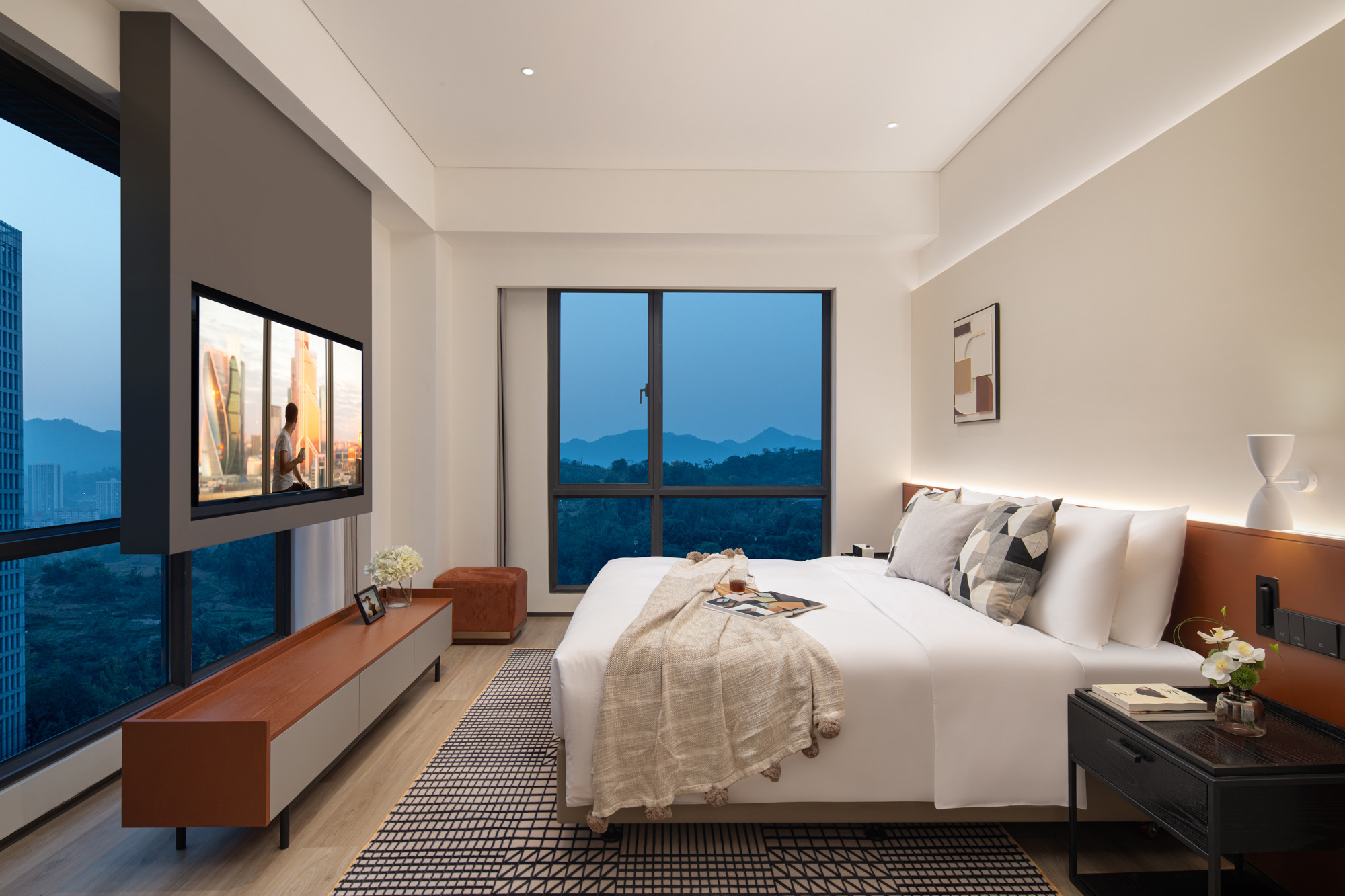 酒店拥有233间现代时尚的客房,从单房到一房套房,科学的空间布局可以满足您不同的入住需求。超大的落地窗,让您在窗下领略城市魅力感受惬意生活的同时尽享明澈采光。舒适洁净的床品,使您在体验城中快意生活之后,也能拥有安稳的睡眠。