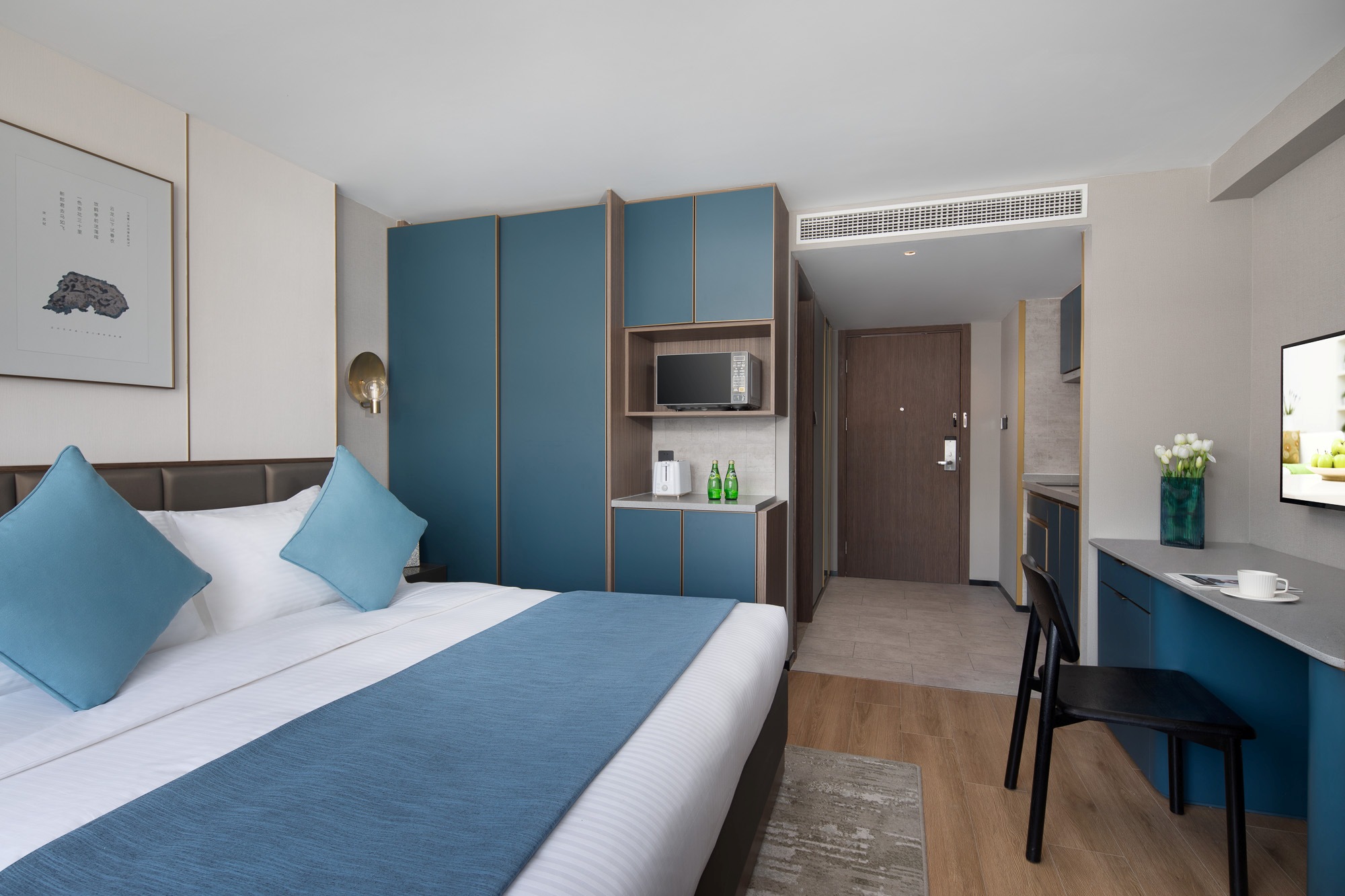 徐州馨乐庭云龙湖公寓酒店造型独特,远看仿佛是一艘停泊在云龙湖边的邮轮,与山、湖完美地融合在一起。公寓的设计风格则引用苏轼笔下的“云龙山下试春衣,一色杏花三十里”,以云龙山、云龙湖和杏花为主题,在物业的装饰上进行抽象的表达,让人仿佛徜徉于山水之间。公寓拥有110套时尚高雅的套房,从单房公寓到两房套房多种房型供您随心选择,每套客房均拥有独立的客厅及用餐区、设施齐全的厨房、高品质的家庭影音系统及高速上网服务,更有24小时的保安巡视及闭路电视监控系统,确保您的居住环境安全无忧。