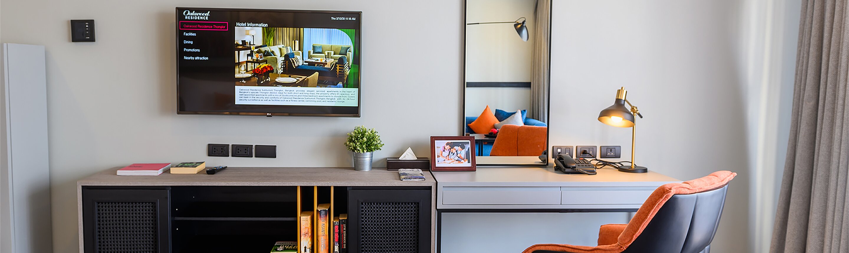 曼谷素坤逸通罗奥克伍德华庭酒店公寓设有八层装潢典雅的服务式公寓,位于高端社区通罗,适合短住或长住的外派人员和重新安置的家庭。67 套时尚现代的公寓从单间公寓到三居室公寓不等,紧邻通罗轻轨站、各大国际学校、美食餐厅和时尚的夜生活场所。在游泳池中畅游避暑,或前往酒店现代化的健身中心畅享运动的乐趣,环境安全,令人放心。